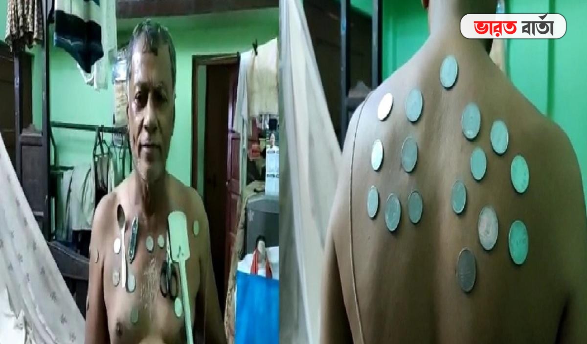 আর পরীক্ষা করা মাত্রই তার চক্ষু একেবারে চড়কগাছ। গায়ের উপর স্বাভাবিকভাবে আটকে যাচ্ছে বিভিন্ন ধরনের ধাতব জিনিস যেমন – হাতা খুন্তি, খুচরো পয়সা এবং আরও অনেক কিছু। এই ঘটনাটি ঘটার পরে নেপালবাবু অত্যন্ত আতঙ্কিত হয়ে পড়েন এবং বিষয়টি তিনি আত্মীয়-স্বজনদের জানান। এখনো পর্যন্ত চিকিৎসকের সাথে যোগাযোগ না করলেও তিনি জানিয়েছেন খুব তাড়াতাড়ি তিনি স্থানীয় চিকিৎসকদের সঙ্গে যোগাযোগ করবেন এবং হাসপাতালে খোঁজখবর নেবেন।